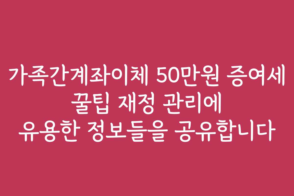 가족 간 계좌이체 50만원 증여세를 절세하는 꿀팁과 재정 관리 정보