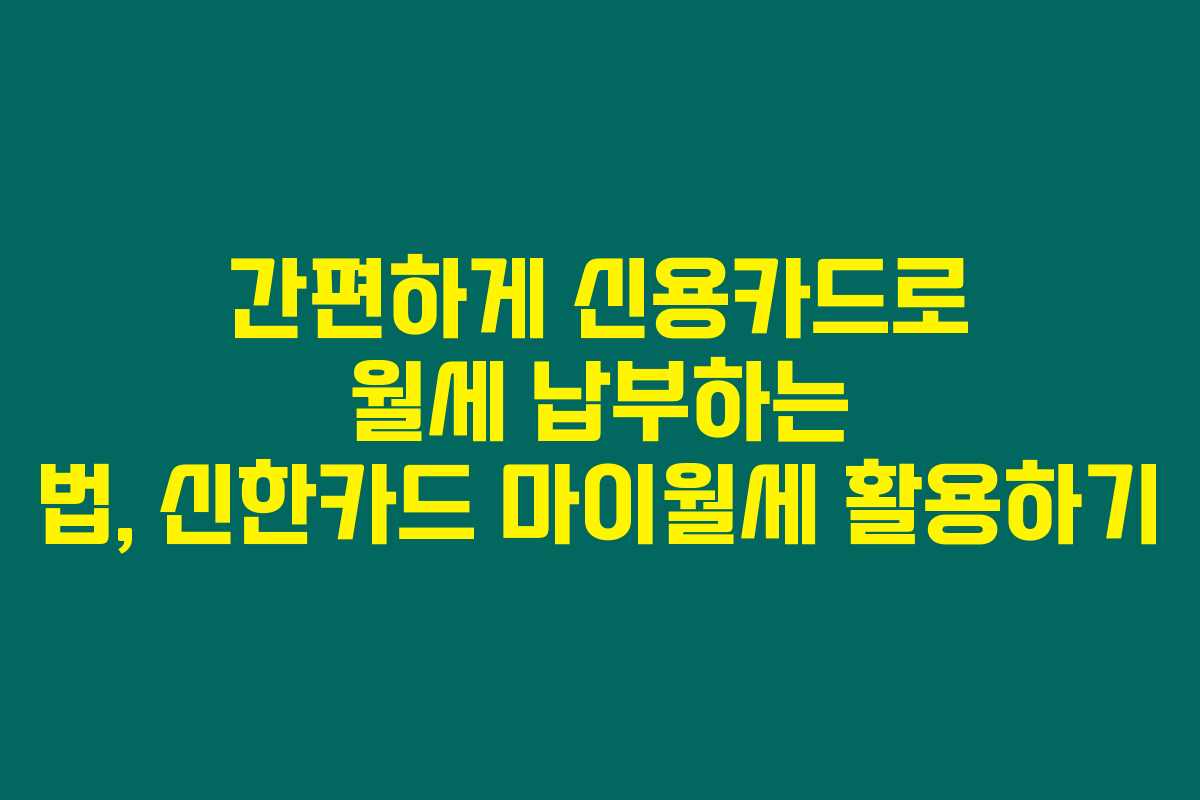 매달 고정적인 지출인 월세를 현금 없이 쉽게 납부할 수 있는 방법이 있다는 사실, 알고 계셨나요? 매번 잊어버릴까 걱정하는 월세 납부를 신용카드로 간편하게 해결할 수 있는 신한카드 마이월세 서비스에 대해 알아보면 좋을 것 같아요. 아래를 읽어보시면 신한카드 마이월세의 활용 방법과 유의사항에 대해 자세히 알아보실 수 있을 것입니다.