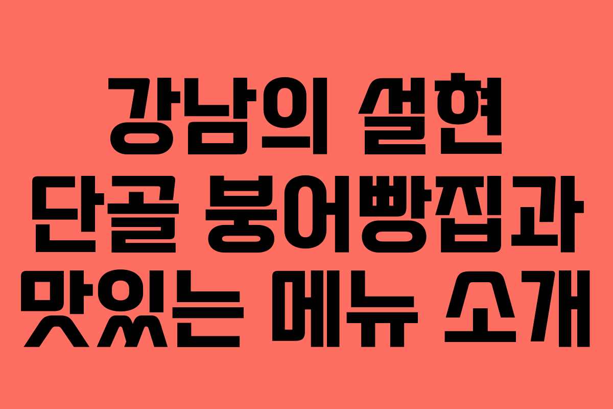 설현이 출연한 TV 프로그램 <나혼자산다>에서 그녀의 새로운 취미와 함께 소개된 붕어빵집에 대한 정보가 화제를 모으고 있습니다. 이번 글에서는 강남에 위치한 설현의 단골 붕어빵집과 메뉴, 가격, 주변 맛집을 상세히 소개하겠습니다.