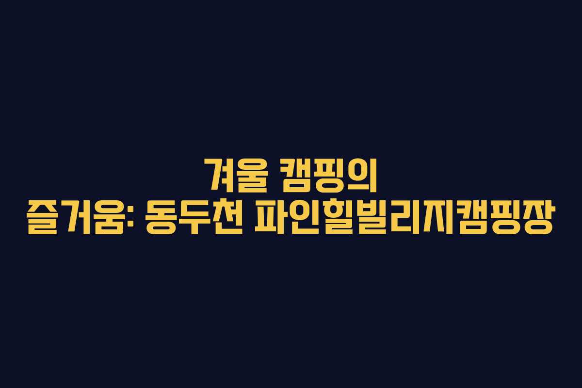 겨울 캠핑은 특별한 매력을 지닌 활동입니다. 이번 글에서는 동두천의 파인힐빌리지캠핑장에서의 2박 3일 동안의 캠핑 경험과 요리를 소개합니다.