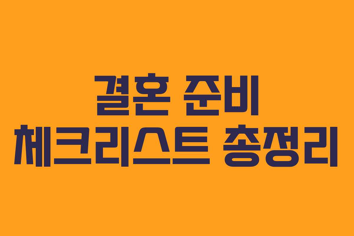이 체크리스트를 통해 결혼 준비를 체계적으로 진행할 수 있으며, 개개인의 일정에 맞춰 조율이 필요합니다. 예비 배우자와 함께 계획을 잘 세워 멋진 결혼식을 완성하시기 바랍니다.