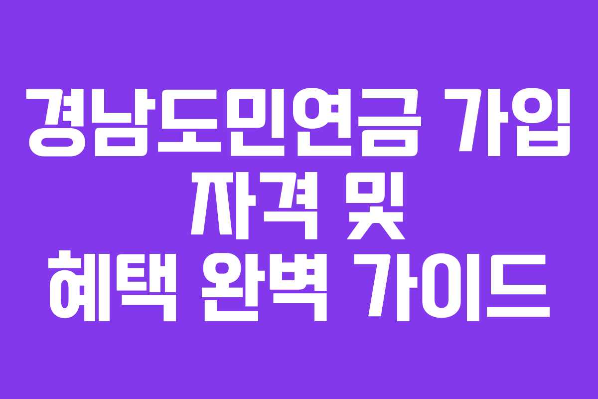 이 가이드를 통해 경남도민연금에 대한 이해를 높이고, 성공적으로 가입할 수 있길 바랍니다.