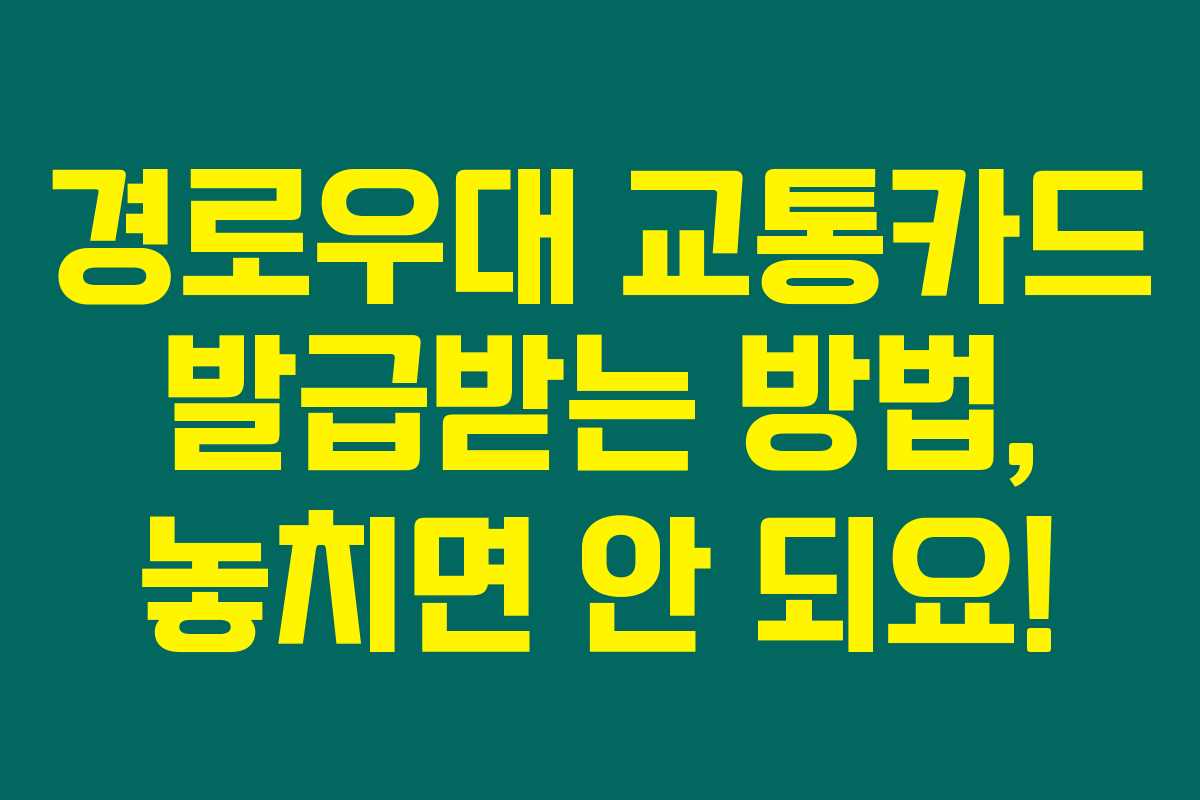 경로우대 교통카드 발급받는 방법, 놓치면 안 되요!