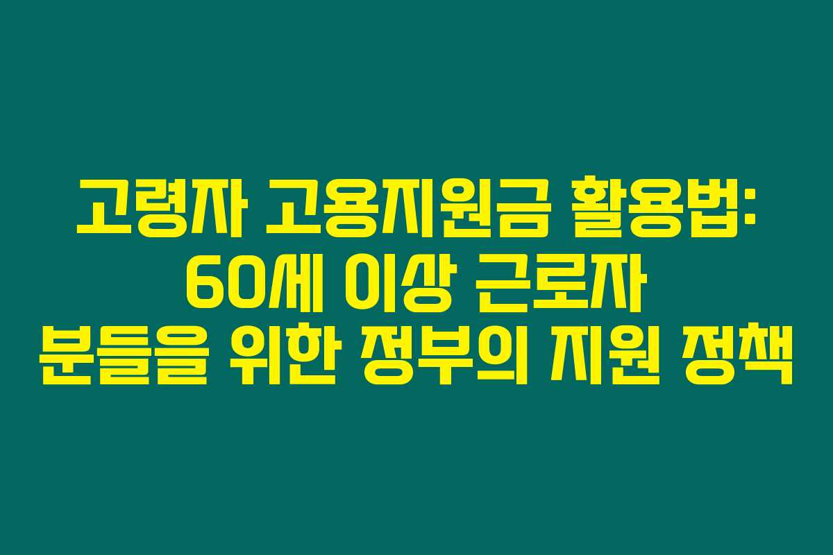 고령화 사회에서 60세 이상의 근로자를 고용하는 분들을 위해 준비된 정부의 지원금을 확인해보셨나요? 고령자 고용지원금은 60세 이상 분들을 지원하는 아주 소중한 제도예요. 오늘 포스팅에서는 이 제도의 핵심과 혜택을 깊게 알아보도록 할게요. 만약 지금 60세 이상의 근로자를 두고 있는 사업주라면 이 혜택을 꼭 활용해야겠죠!