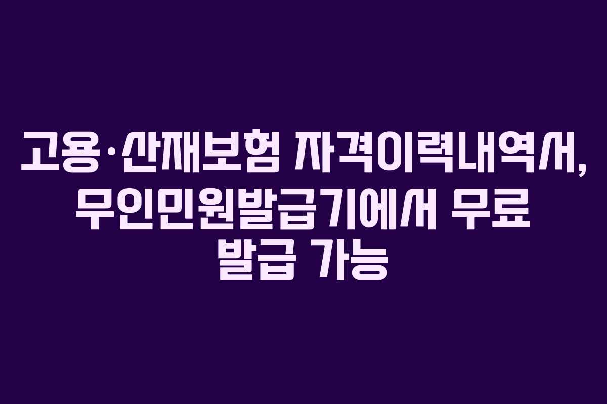 고용·산재보험 자격이력내역서를 이제 무인민원발급기에서 무료로 발급받을 수 있게 되었습니다. 근로복지공단과 행정안전부는 근로자와 사업주가 손쉽게 고용·산재보험 증명서를 발급받을 수 있도록 전국의 무인민원발급기에서 16종의 증명서를 무료로 제공하는 서비스를 시작했습니다.