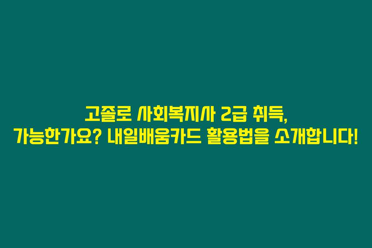 제가 직접 경험해본 결과로는, 고졸 학력으로도 사회복지사 2급 자격증을 취득하는 것이 충분히 가능하다는 사실을 말씀드리고 싶어요. 복잡한 조건 속에서도 내일배움카드를 잘 활용하면 고졸자도 사회복지사 자격을 쉽게 획득할 수 있답니다. 이 글에서는 그 방법에 대해 자세히 알려드릴게요.