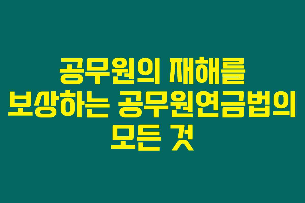 공무원들이 업무 중 겪는 위험과 사고를 보상하기 위한 법적 장치인 공무원연금법은 우리 사회에서 매우 중요한 역할을 합니다. 아래를 읽어보시면 이 법이 어떻게 작동하며, 공무원들에게 제공하는 보상 체계에 대해 자세히 알아볼 수 있습니다.