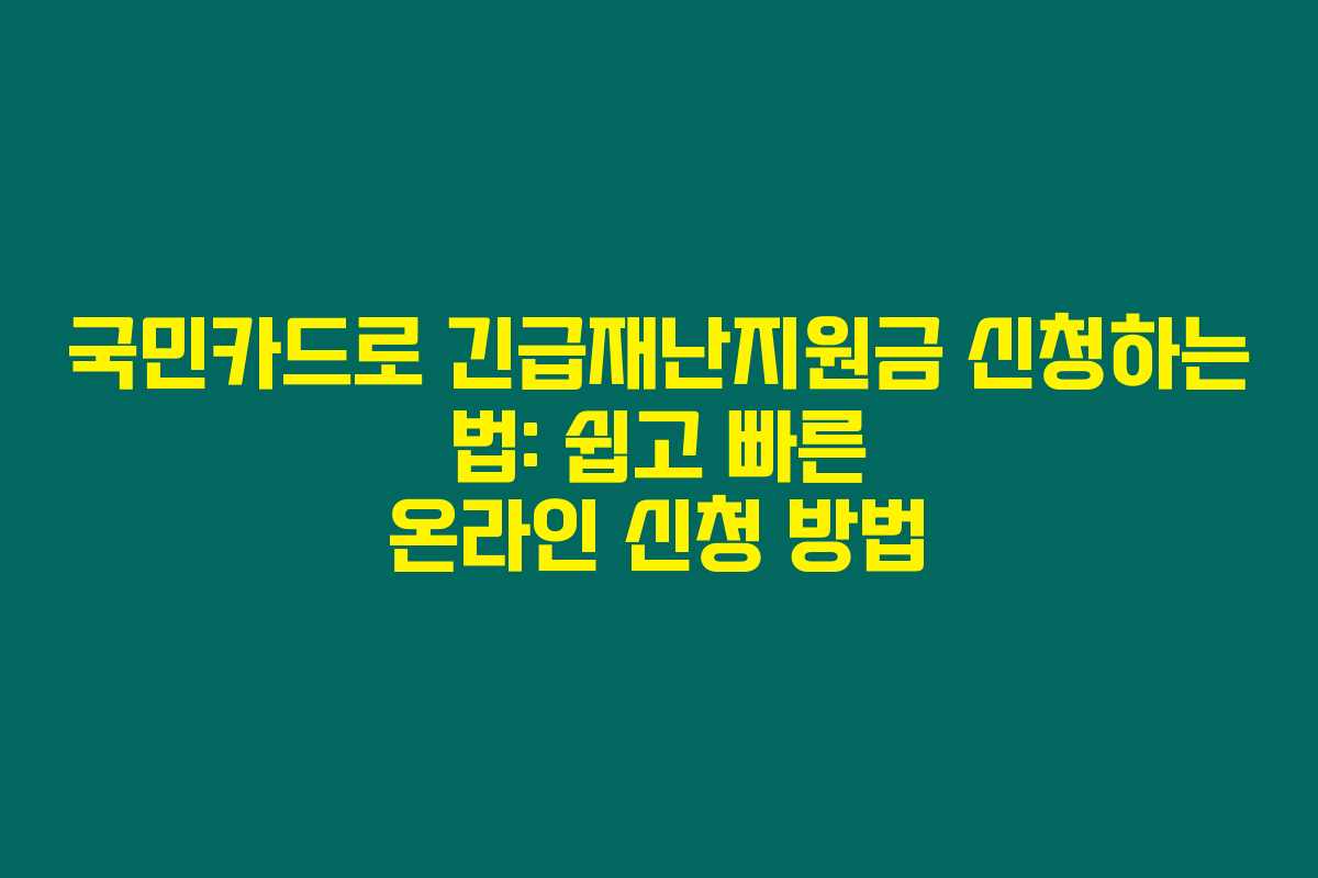 제가 알아본 바로는, 최근 코로나19로 인해 많은 분들이 경제적으로 어려움을 겪고 있습니다. 국가에서는 이를 돕기 위해 긴급재난지원금을 마련했는데요. 특히 국민카드를 이용하면 더욱 쉽고 간편하게 신청할 수 있습니다. 아래를 읽어보시면 국민카드로 긴급재난지원금을 어떻게 신청할 수 있는지, 그리고 관련 정보에 대해 자세히 알아보실 수 있습니다.