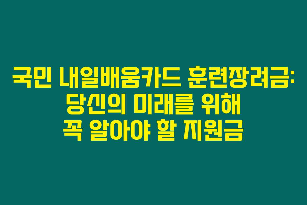 국민 내일배움카드 훈련장려금에 대해 여러 정보를 수집하고 확인한 결과, 이를 통해 감당할 수 있는 금액이 상당하다는 것을 알게 되었어요. 이 카드로 300만 원에서 500만 원을 지원받아 자기계발을 할 수 있는 기회를 제공하니 유용할 것 같아요.
