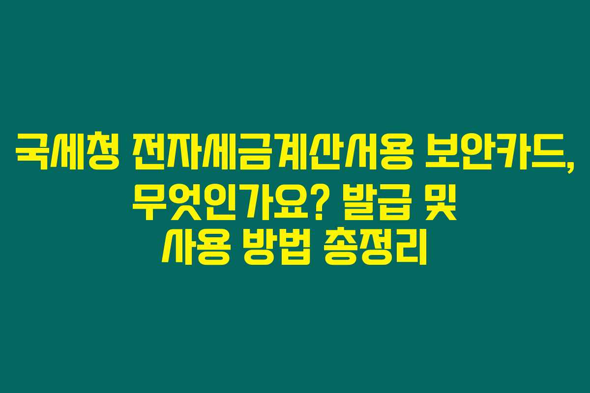 전자세금계산서 발급을 고려하고 계신가요? 국세청의 전자세금계산서용 보안카드는 정말 필수랍니다. 아래를 읽어보시면 이 카드의 중요성과 발급 및 사용 방법에 대한 궁금증이 해소될 거에요. 여러분도 세금계산서 발급이 한층 수월해질 거랍니다!