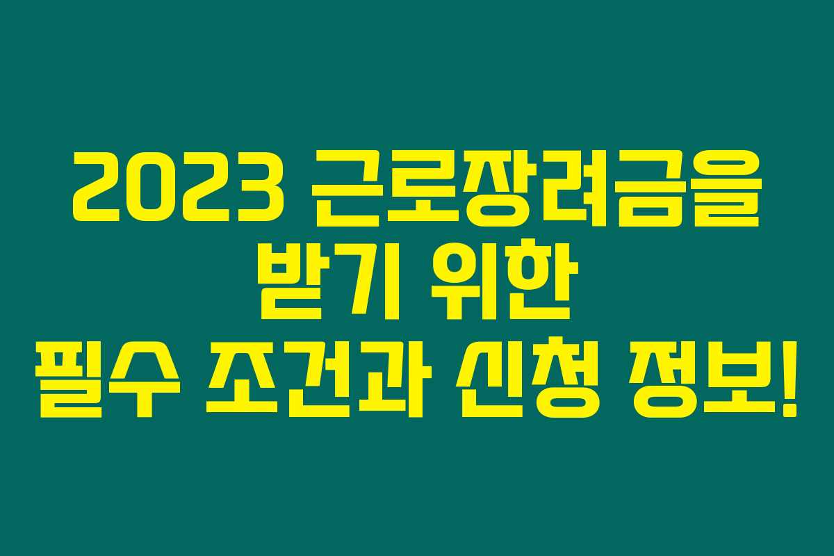2023 근로장려금을 받기 위한 필수 조건과 신청 정보!