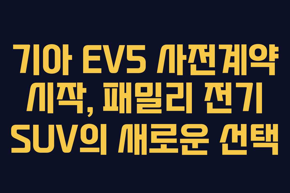 기아가 전기 SUV인 EV5의 사전계약을 시작했습니다. 이 모델은 가족 사용에 최적화된 다양한 기능과 편의성을 갖추고 있어 관심을 받고 있습니다. 본 글에서는 기아 EV5의 주요 특징, 구매 절차, 보조금 계산 방법 등을 자세히 알아보겠습니다.
