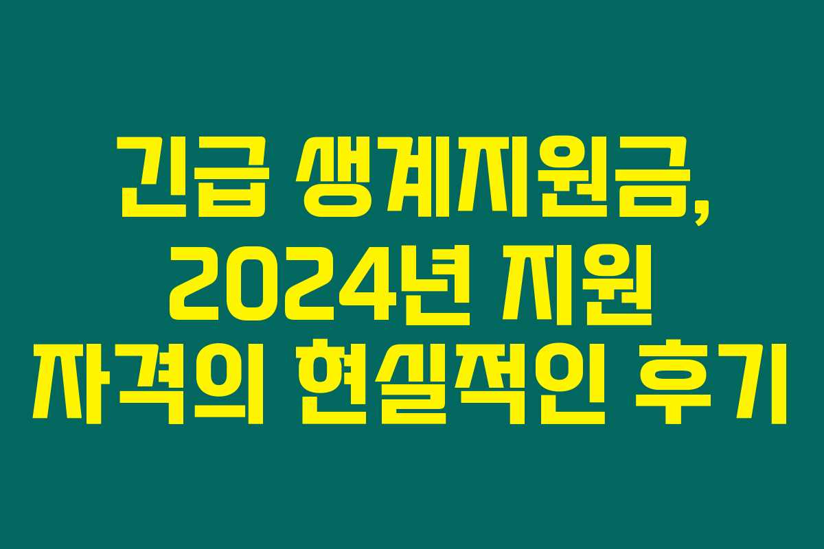 제가 알아본 바로는 긴급 생계지원금은 갑자기 생계가 어려워진 국민을 위한 중요한 지원 프로그램이에요. 하지만 2024년에는 지원 자격이 생각보다 까다롭다는 점을 꼭 알고 계셔야 할 것 같아요. 아래를 읽어보시면 실제 신청 후기를 통해 지원금에 대한 정보와 함께, 자격 요건에 대한 심도 깊은 이야기를 확인할 수 있습니다.