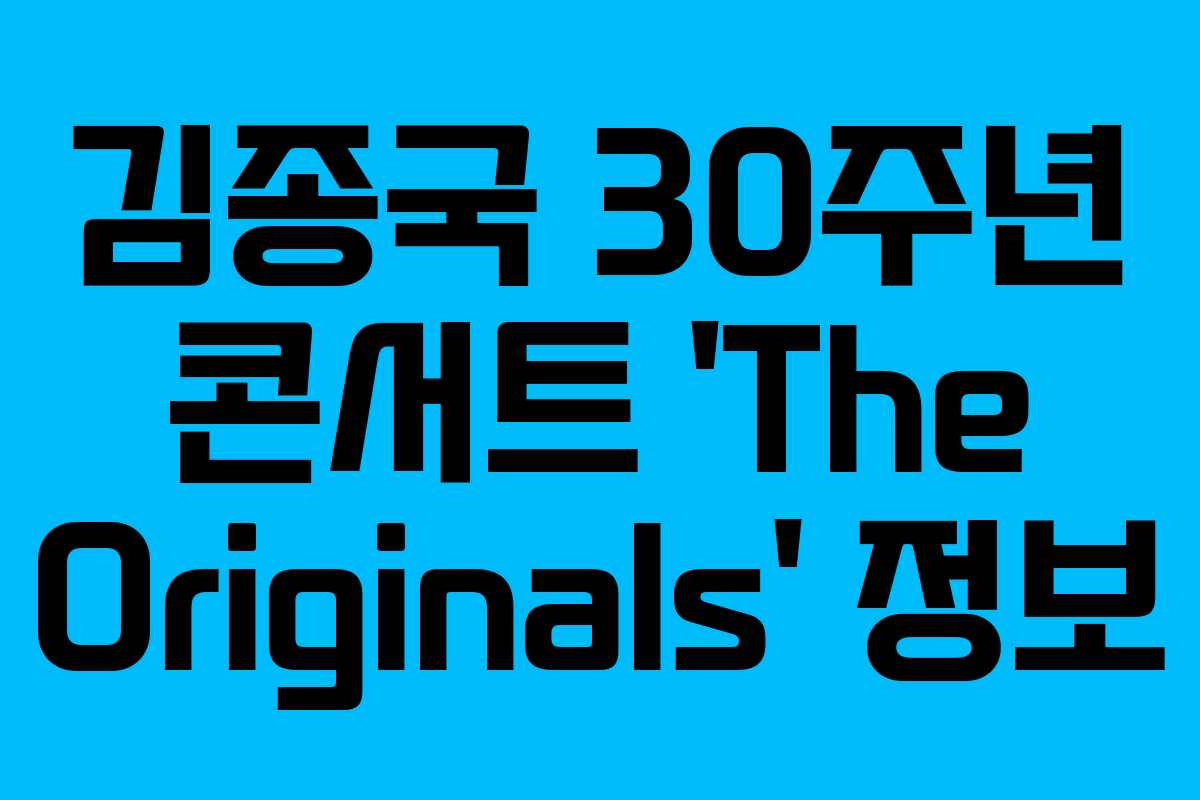 - 공연명: 김종국 30주년 콘서트 〈The Originals〉
