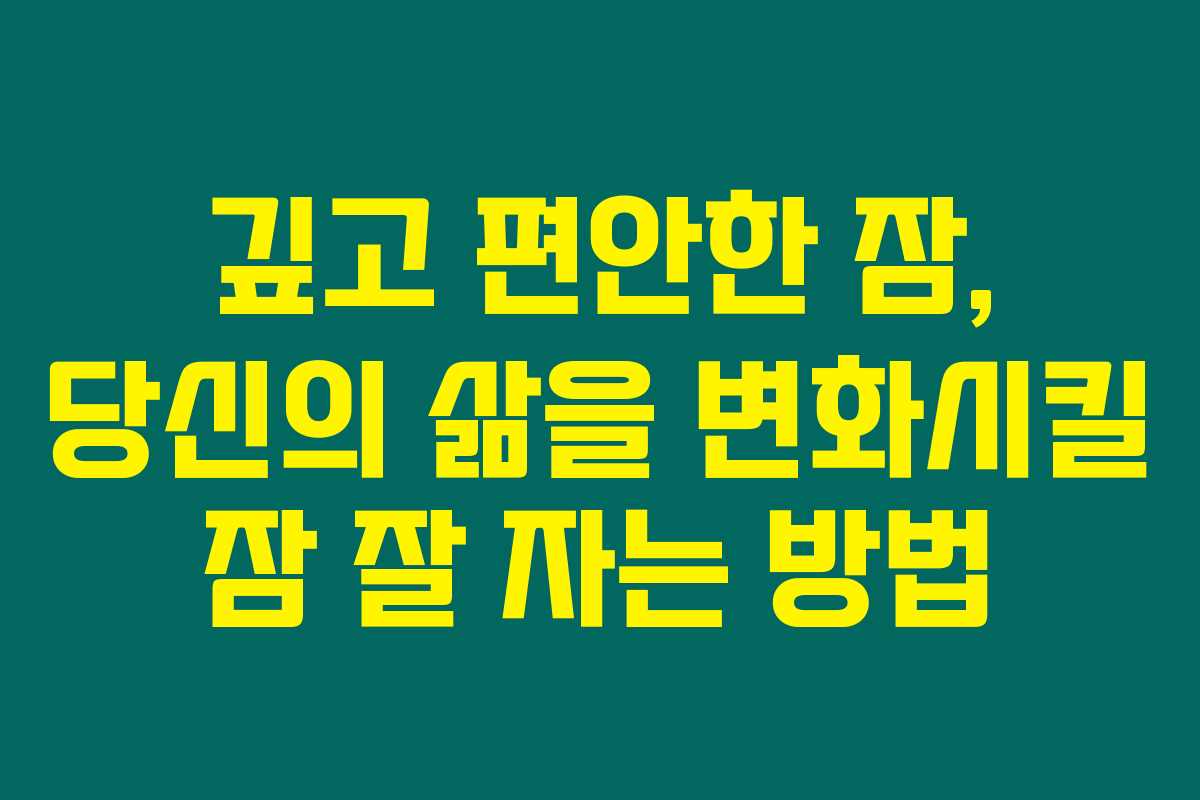 이 방법을 통해 더욱 깊은 잠을 체험해 보시길 바라요.