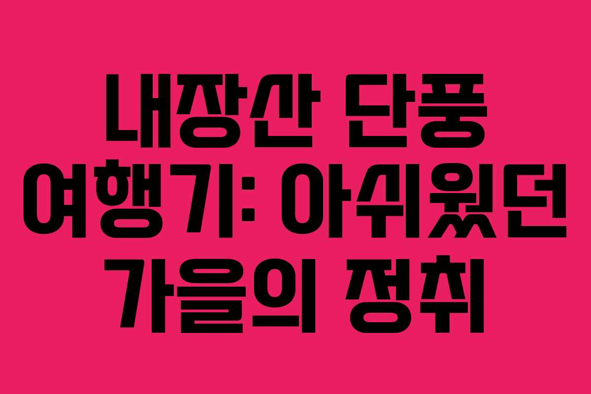 내장산 단풍 여행기: 아쉬웠던 가을의 정취