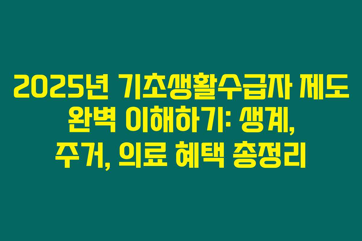 2025년 기초생활수급자 제도 완벽 이해하기: 생계, 주거, 의료 혜택 총정리