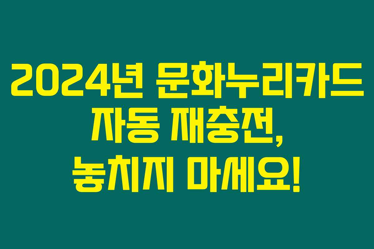 2024년 문화누리카드 자동 재충전, 놓치지 마세요!