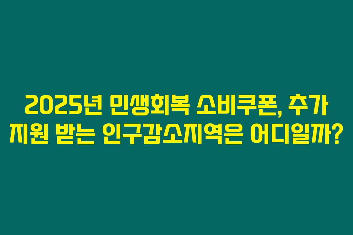 제가 직접 리서치한 바로는, 2025년 민생회복 소비쿠폰은 농어촌 인구감소지역 주민에게 5만 원의 추가 혜택이 제공된다는 사실인데요. 이번 블로그에서는 소비쿠폰 5만 원 추가 지급이 가능한 인구감소지역이 어디인지, 신청 방법은 무엇인지 자세히 알아보겠습니다. 아래를 읽어보시면 많은 도움 되실 거예요!