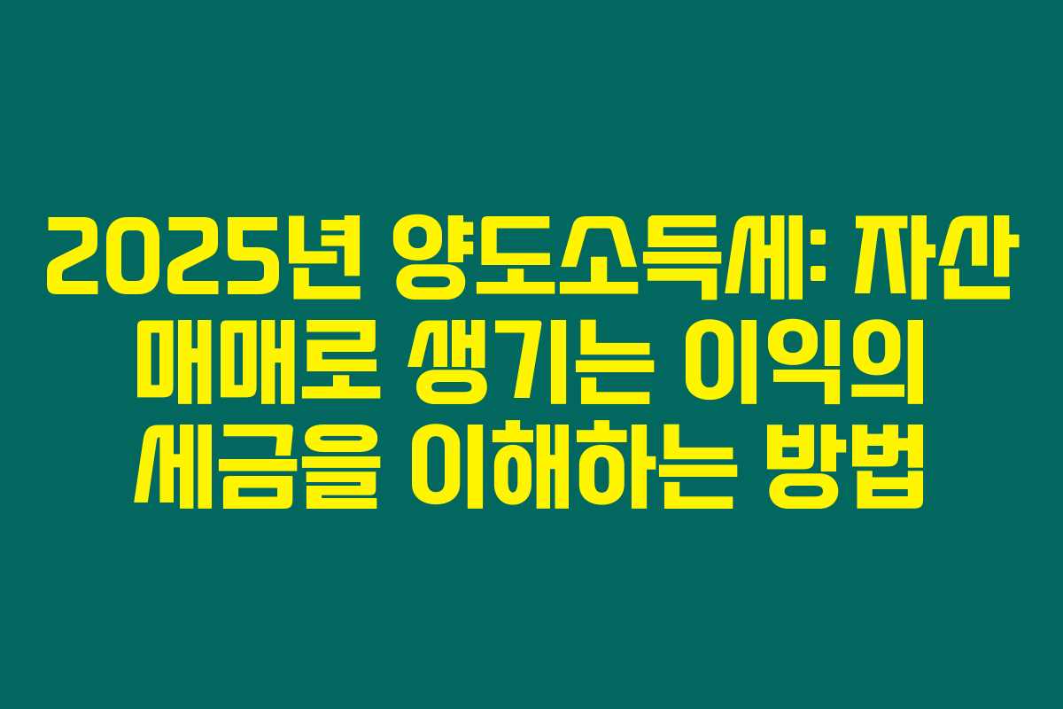 2025년 양도소득세: 자산 매매로 생기는 이익의 세금을 이해하는 방법