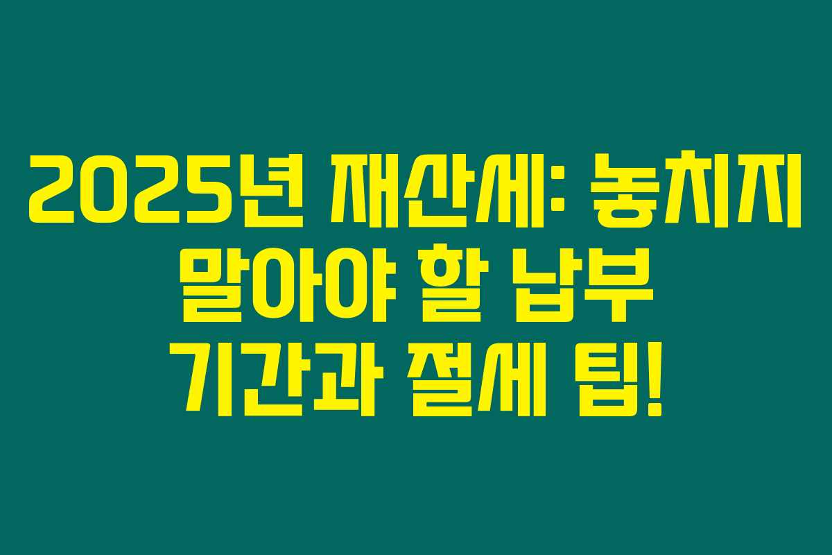 마무리하자면, 재산세는 중요한 지방세예요. 2025년 재산세를 놓치지 않기 위해 미리 준비하시는 게 좋겠죠? 기한 내 납부와 다양한 절세 팁을 참고하셔서 저 위축된 세액을 최대한 줄이시길 바라요. 궁금한 점이 있으면 언제든 질문해 주세요! 여러분의 물음을 환영한답니다!