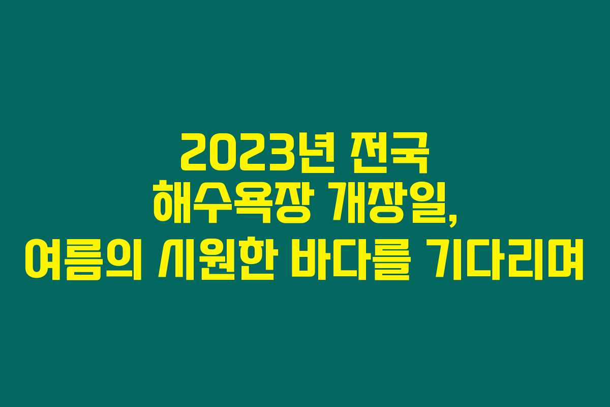 해수욕장의 개장일은 매우 중요합니다. 지역마다 개장일이 다르기 때문에 각 해수욕장의 개장일을 잘 알아두는 것이 좋아요.