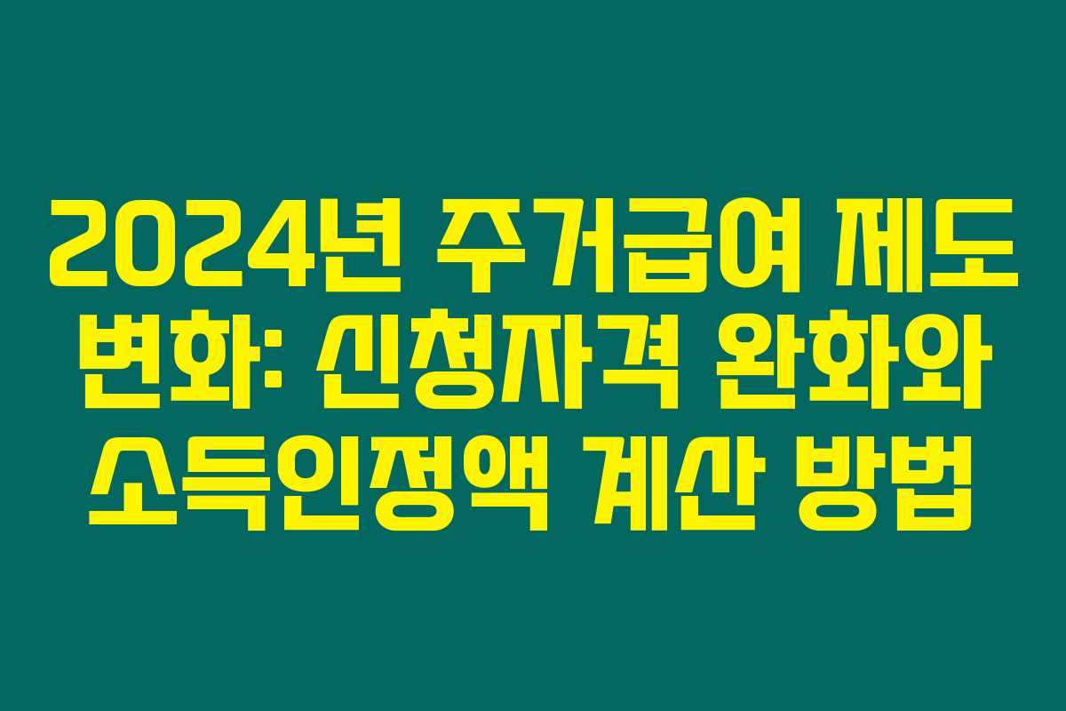 2024년 주거급여 제도 변화: 신청자격 완화와 소득인정액 계산 방법