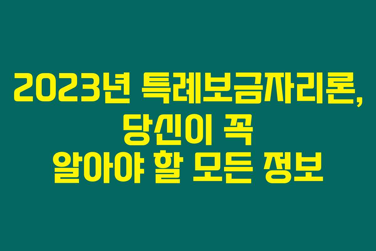 2023년 특례보금자리론, 당신이 꼭 알아야 할 모든 정보