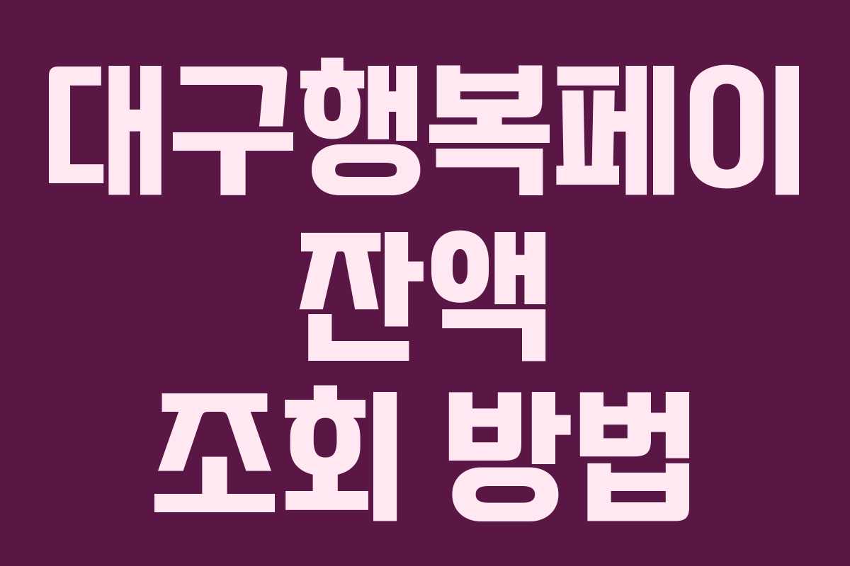 대구행복페이는 대구시에서 발행하는 지역화폐로, 시민들에게 다양한 혜택을 제공하고 소비 촉진에 기여하고 있습니다. 이번 글에서는 대구행복페이의 잔액을 조회하는 여러 가지 방법을 소개합니다.