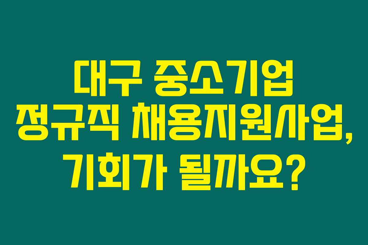 제가 알아본 바로는 대구시에서는 중장년층의 정규직 채용을 촉진하기 위해 2024년 중소기업 정규직 채용지원사업을 시행하고 있습니다. 이 사업은 중소기업이 신규 채용을 통해 정규직 일자리를 창출할 수 있도록 지원하는 프로그램으로, 아래를 읽어보시면 구체적인 신청조건과 방법에 대해 자세히 알 수 있습니다.