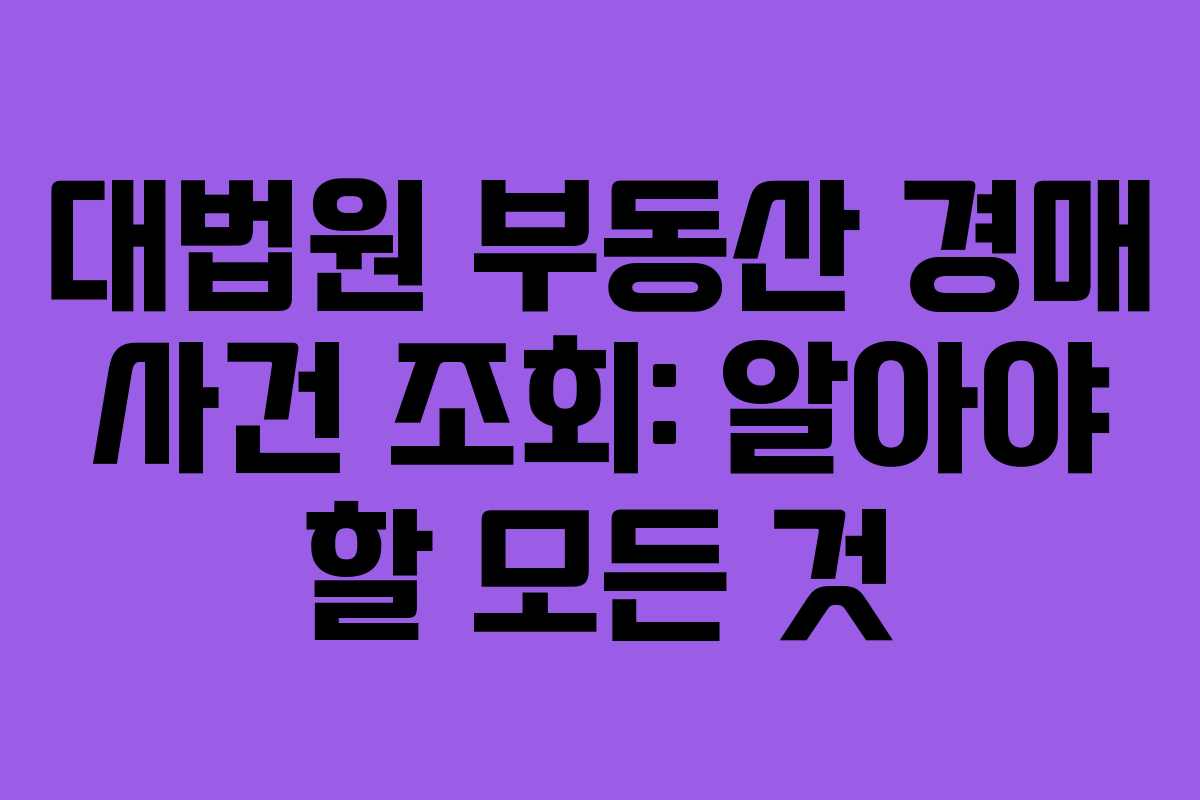 부동산 경매는 투자자와 일반 구매자에게 매력적인 기회를 제공합니다. 그러나 법적 절차와 정보를 충분히 이해하지 못하면 손실을 입을 수 있습니다. 이번 글에서는 대법원 부동산 경매 사건 조회 방법과 관련된 정보를 자세히 살펴보겠습니다.