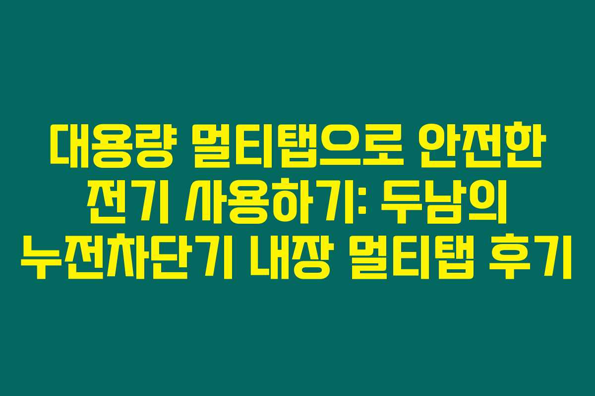 일상에서 전기 제품을 많이 사용하는 현대인들에게 멀티탭은 필수 아이템처럼 자리 잡고 있죠. 특히, 고용량 전기 제품 사용 시 누전차단기가 내장된 멀티탭은 더욱 안심할 수 있습니다. 아래를 읽어보시면, 제가 사용하고 있는 두남의 고용량 멀티탭에 대한 경험과 정보를 공유할게요.