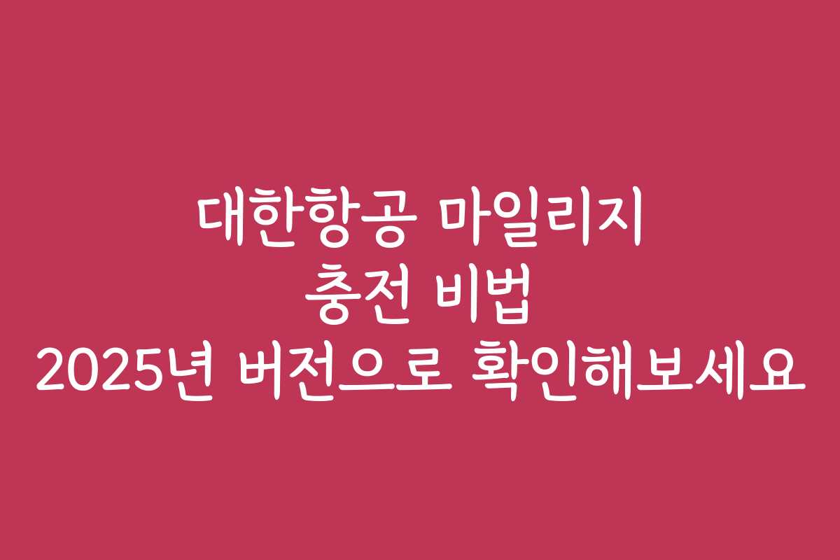 대한항공 마일리지 충전 비법 2025년 버전으로 확인해보세요