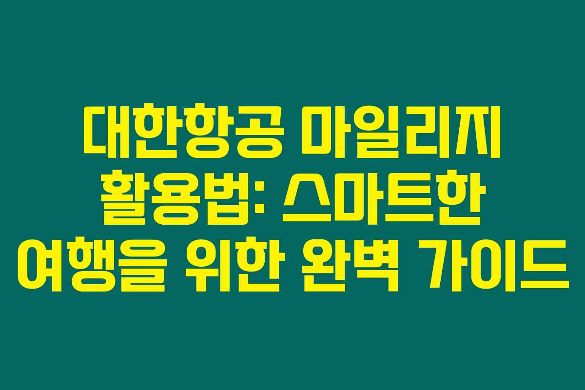 대한항공 마일리지는 많은 여행자에게 있어 소중한 자산입니다. 단순히 항공권 구매를 넘어, 다양한 방법으로 활용 가능해 비용을 절감할 수 있도록 도와줍니다. 아래를 읽어보시면 대한항공 마일리지의 알뜰한 사용법을 통해 여행 경비를 절약하고 더 풍요로운 여행을 경험하는 팁을 알게 될 것입니다.