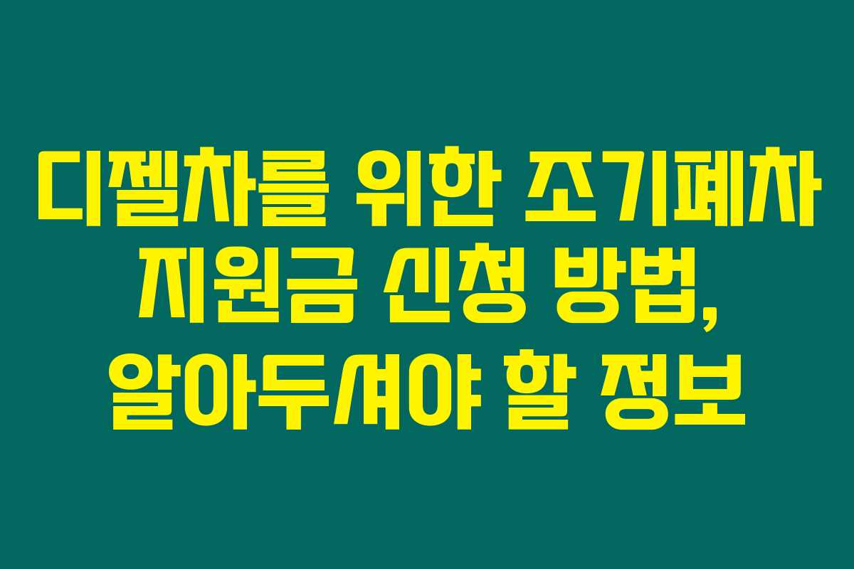 조기폐차 지원금에 대한 궁금한 점은 명확하게 정리했습니다. 디젤차를 폐차하면서 어떤 지원이 있는지 한눈에 보기 쉽게 알아볼 거냐구요. 이제 바로 시작해 볼게요!