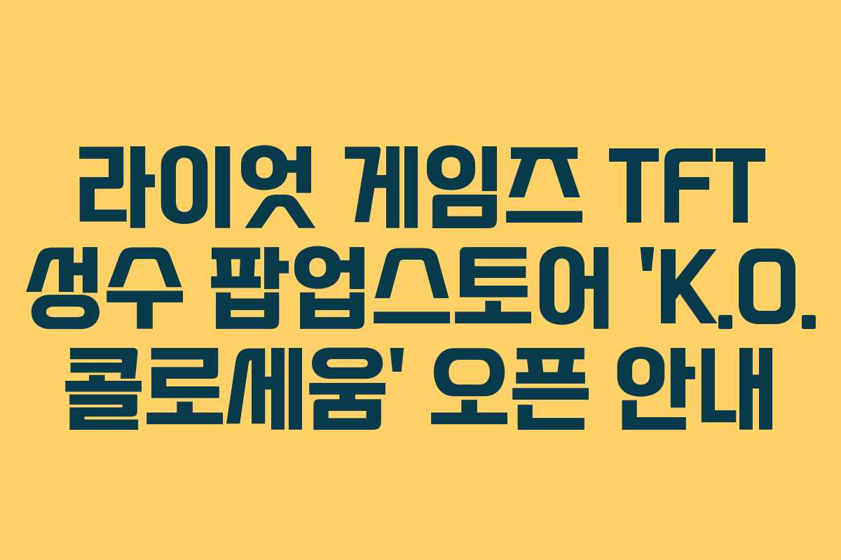 2025년 8월 1일부터 10일까지 성수에서 열리는 라이엇 게임즈의 TFT 팝업스토어 ‘K.O. 콜로세움’에 대한 상세 정보를 제공하겠습니다. 이 팝업스토어는 팬들에게 특별한 체험을 선사하며, 다양한 즐길 거리를 마련하고 있습니다.