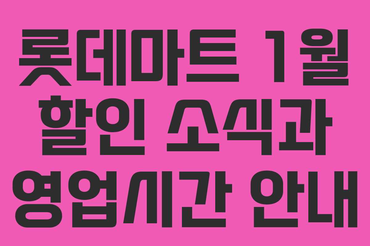 아래를 읽어보시면 이번 1월 롯데마트의 주요 할인 행사와 함께 지점별 영업시간·휴무일, 전단지 확인 방법까지 한눈에 파악할 수 있습니다. 공식 채널을 통해 최신 소식도 함께 점검해 보세요.