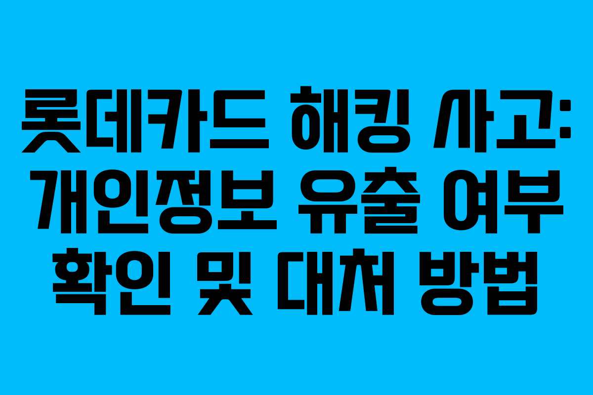 ⚠️ 주의: “개인정보 유출 확인”을 사칭한 피싱 문자나 가짜 홈페이지에 주의해야 하며, 반드시 롯데카드 공식 홈페이지를 통해 확인해야 합니다.