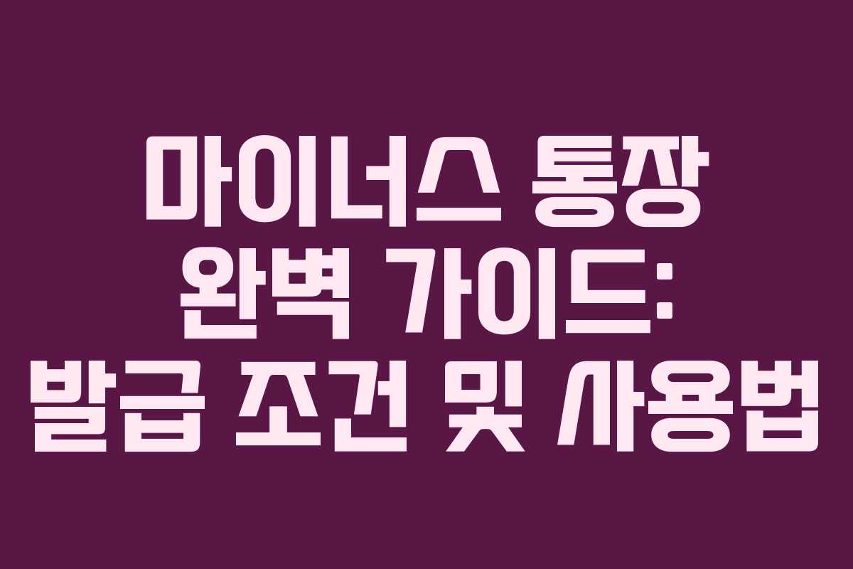 마이너스 통장 완벽 가이드: 발급 조건 및 사용법