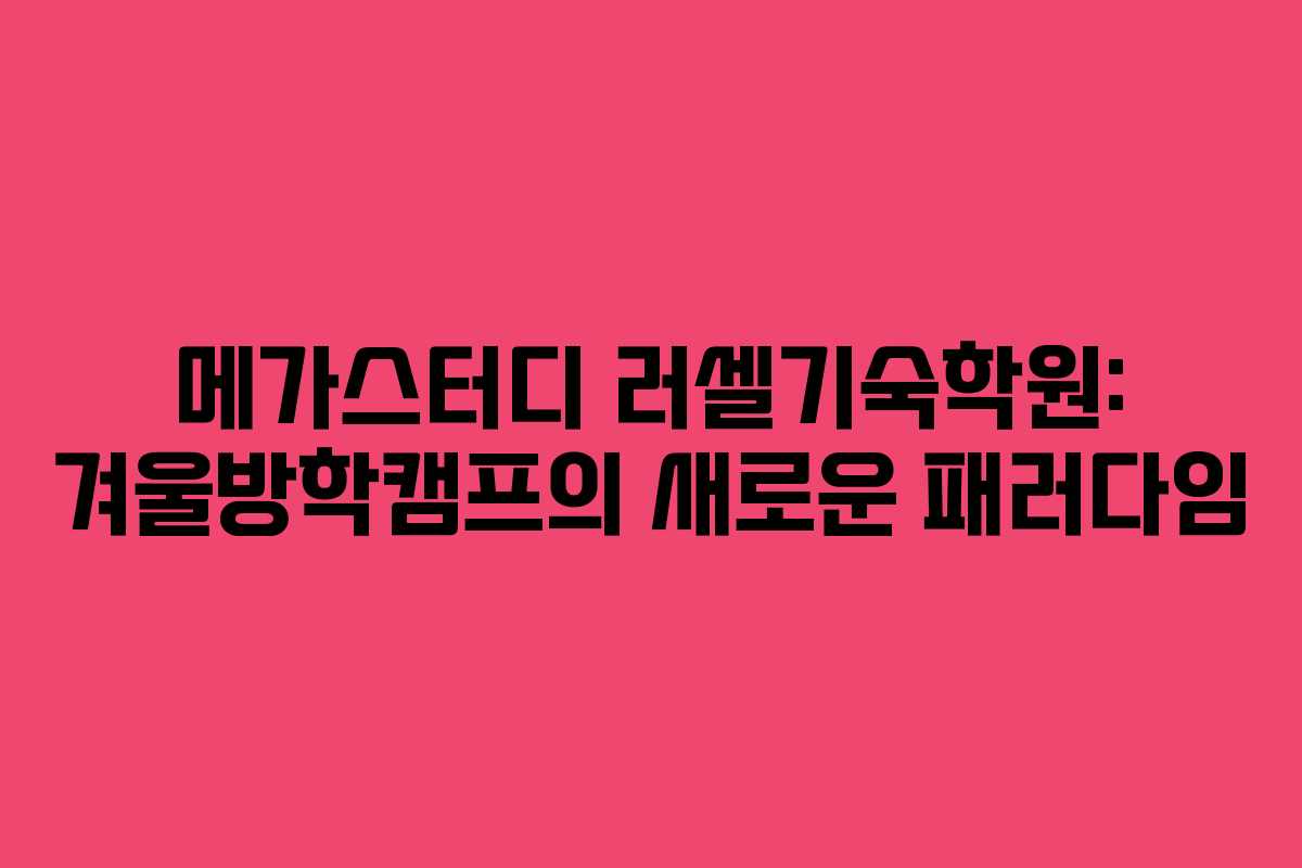 메가스터디 러셀기숙학원: 겨울방학캠프의 새로운 패러다임