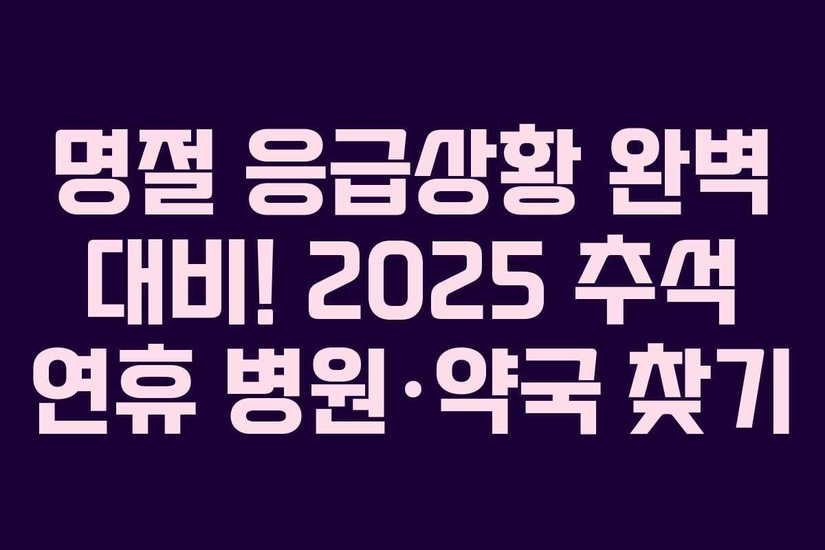 연휴는 가족과 함께하는 소중한 시간입니다. 예상치 못한 상황으로 인해 연휴를 망치지 않도록 미리 준비하세요. 2025년 추석 연휴를 건강하고 안전하게 보내시길 바랍니다.
