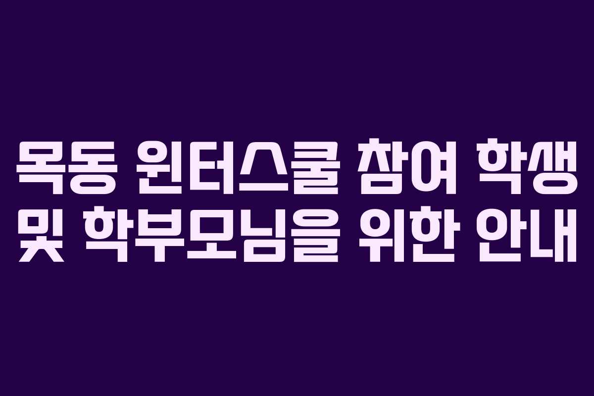 목동 윈터스쿨 참여 학생 및 학부모님을 위한 안내