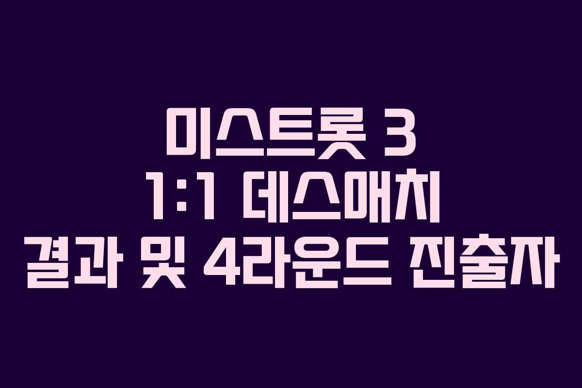 질문1: 미스트롯 3의 1:1 데스매치는 어떤 형식으로 진행되나요?