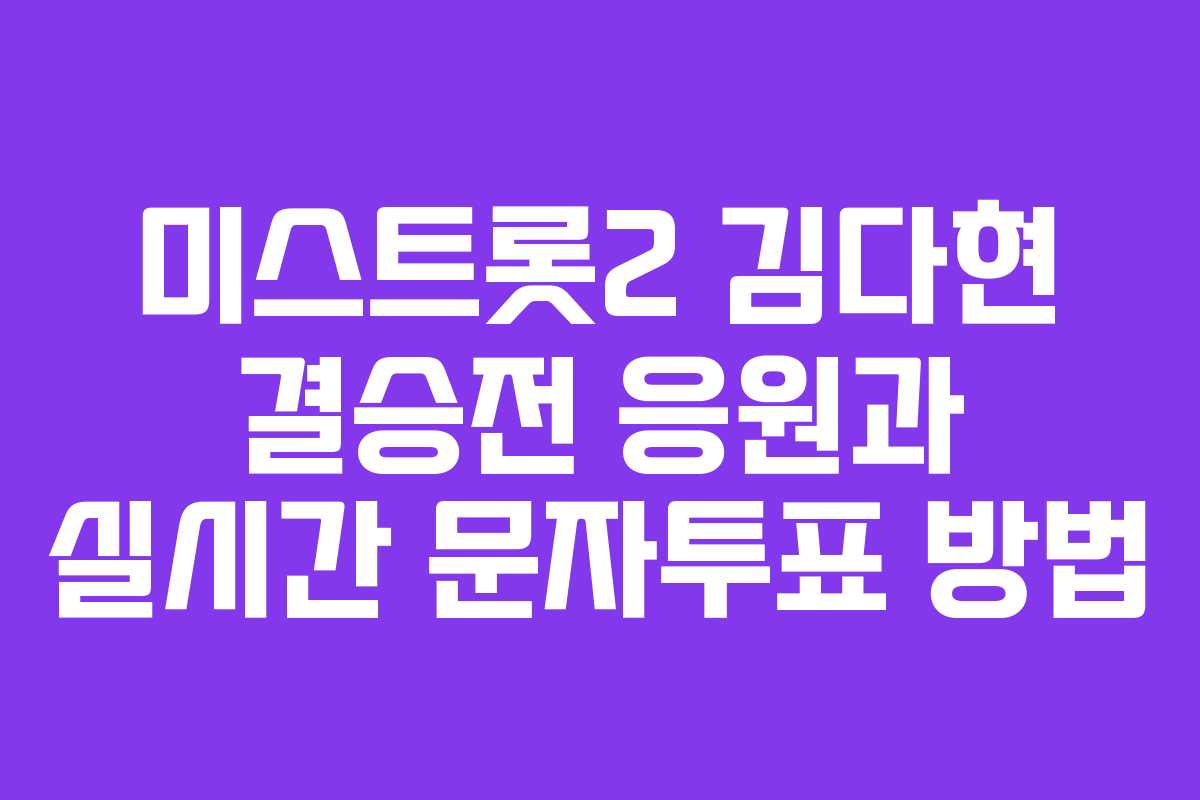 미스트롯2의 결승전에 진출한 김다현을 응원하기 위한 다양한 방법과 실시간 문자투표 방법을 소개합니다. 많은 팬들이 김다현의 멋진 무대와 의상에 힘입어 응원하고 있습니다.