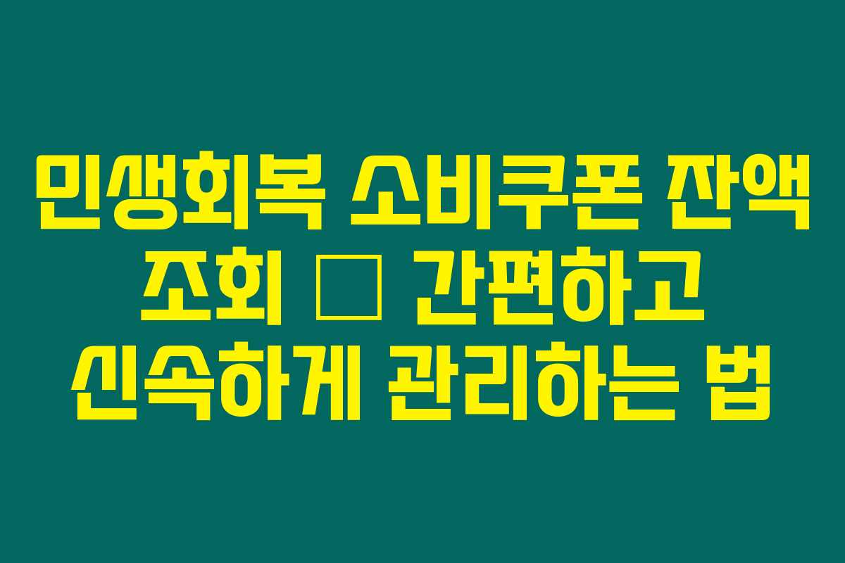 민생회복 소비쿠폰 잔액 조회 – 간편하고 신속하게 관리하는 법