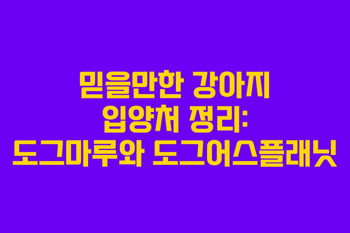 강아지 입양은 많은 이들에게 행복한 경험이지만, 신뢰할 수 있는 입양처를 찾는 것이 중요합니다. 최근 유기견 보호소에서의 사기 사례가 늘어나면서, 믿을 수 있는 유기견 보호센터에 대한 수요가 증가하고 있습니다. 이번 글에서는 도그마루와 도그어스플래닛 두 곳을 소개합니다.