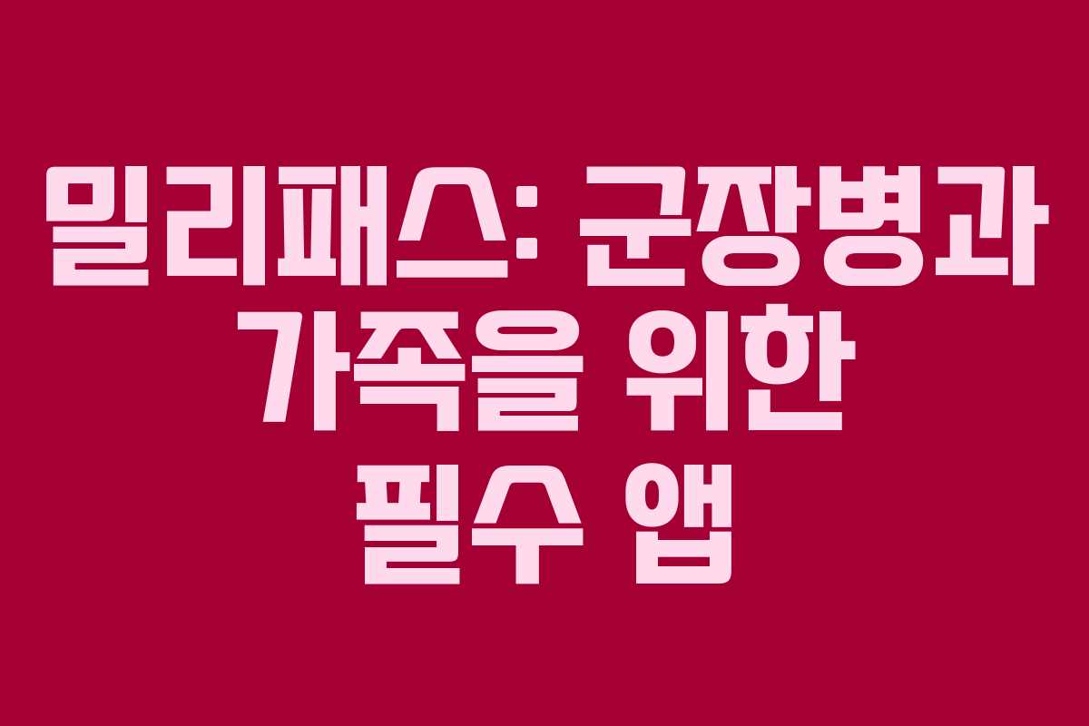 군대 생활을 보내는 아드님을 둔 부모님들에게 좋은 소식을 전합니다. 군인과 그 가족이 누릴 수 있는 복지 혜택이 생각보다 다양하다는 사실을 아셨나요? 특히, 밀리패스라는 앱을 통해 이러한 혜택을 간편하게 이용할 수 있습니다.