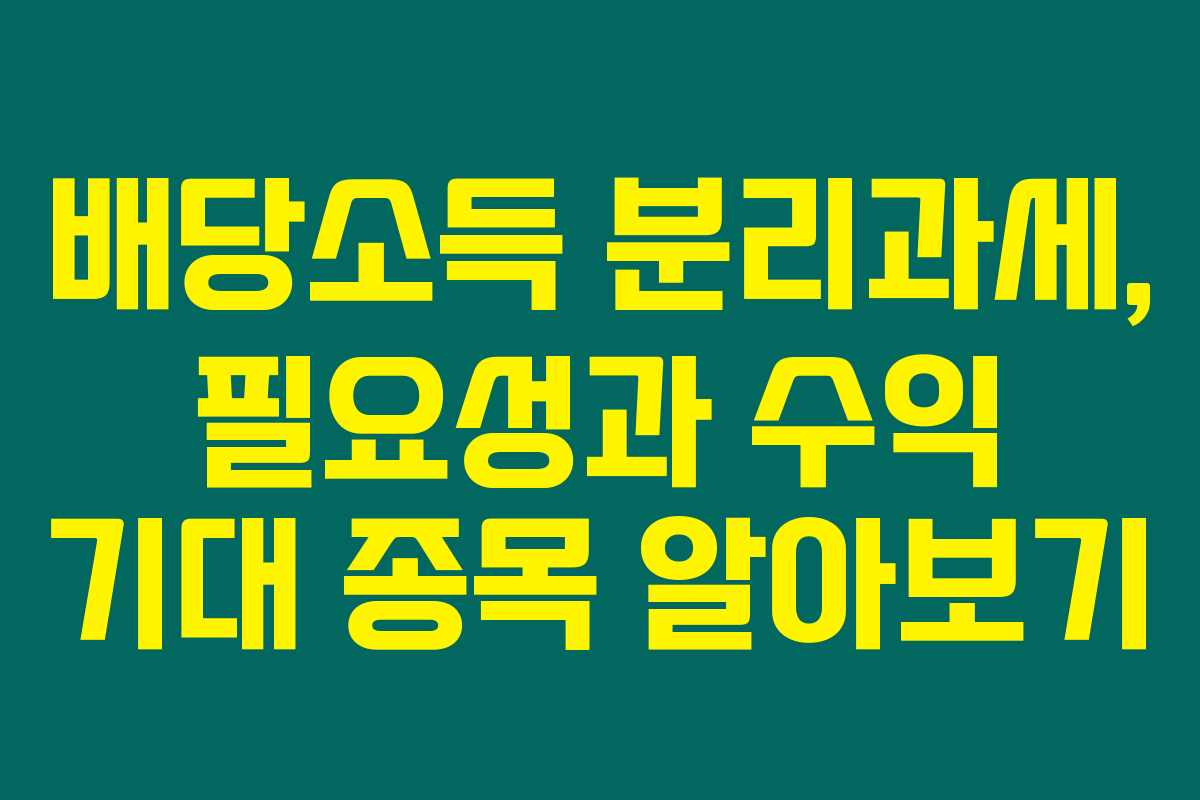 제가 직접 체크해본 바로는 배당소득 분리과세는 한국의 자본시장에서 중요한 변화를 가져올 전망입니다. 이재명 대통령의 정책을 통해 배당소득에 대한 세제 개편이 추진되고 있는데요, 이는 주식시장에 활력을 불어넣고 투자자들에게 매력적인 기회를 제공하게 될 것입니다. 아래를 읽어보시면 이 정책의 배경과 수혜 예상 종목 및 업종에 대해 자세히 알아볼 수 있습니다.