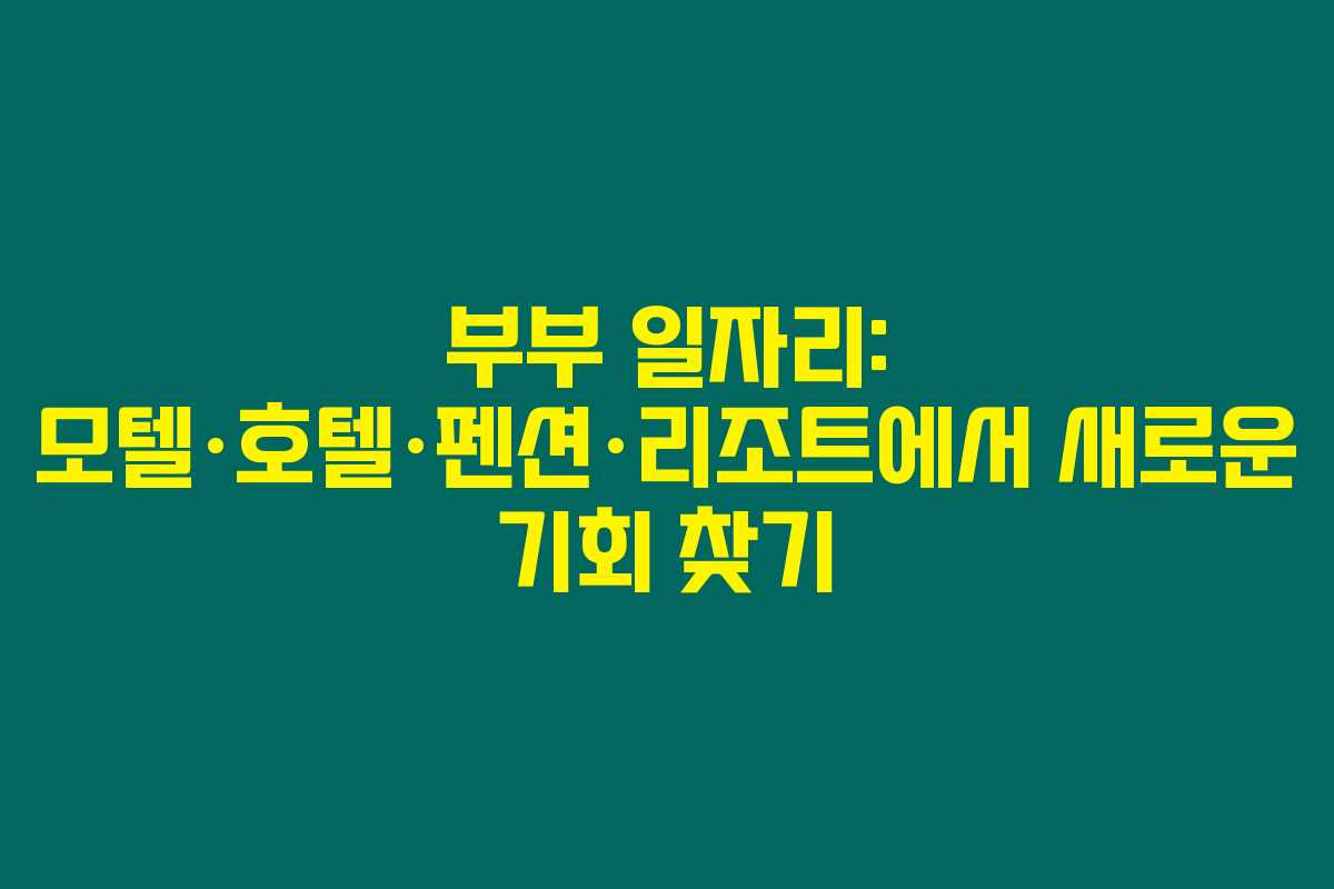 부부가 함께 일할 수 있는 다양한 일자리를 찾을 수 있다는 것은 정말 큰 장점이에요. 모텔, 호텔, 펜션, 리조트 등 여러 분야에서 함께 할 수 있는 기회를 적극 활용해보세요. 각 업체의 요구 사항을 잘 확인하고 지원해보시면 좋겠습니다!