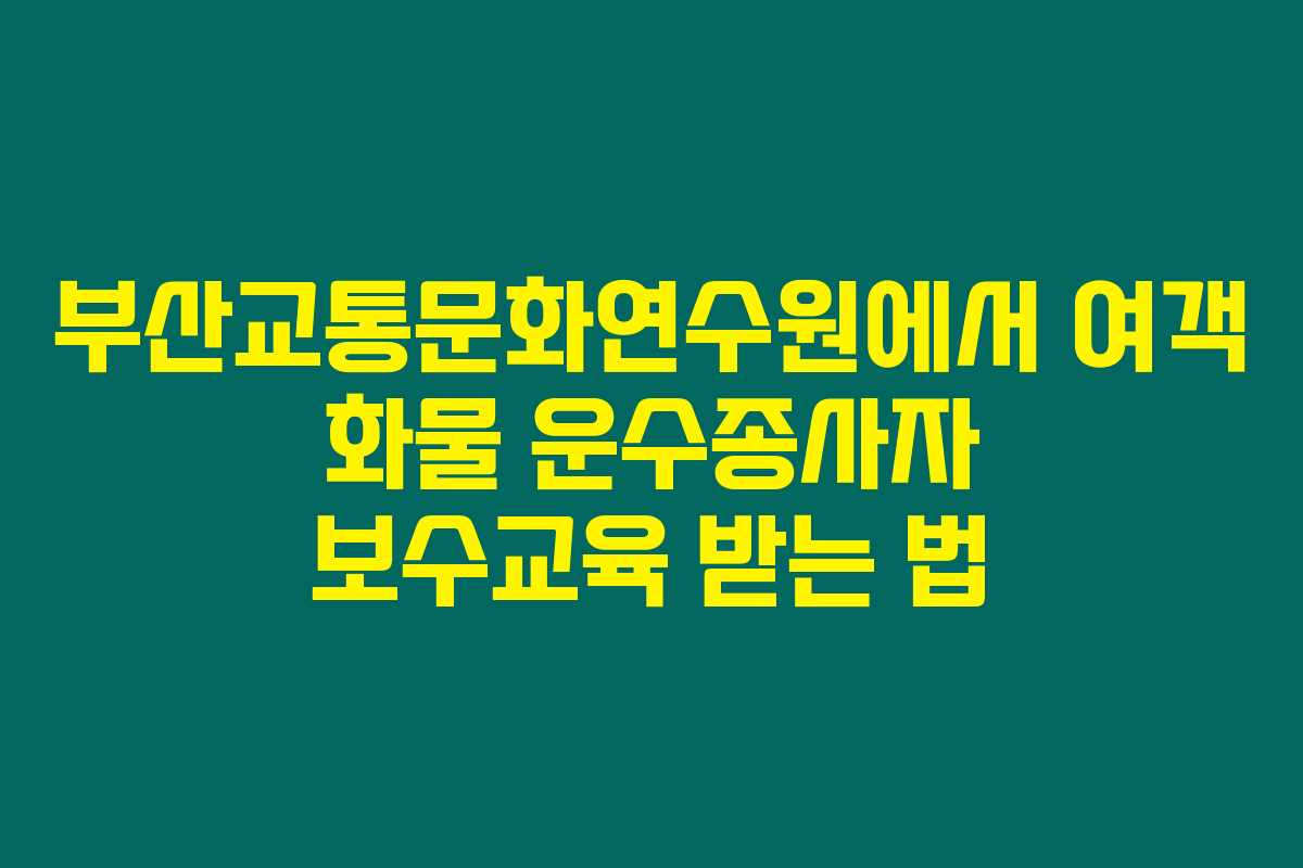 부산교통문화연수원에서 여객 화물 운수종사자 보수교육을 받는 게 궁금하신가요? 보수교육은 안전하게 차량 운영을 하기 위한 필수 과정입니다. 아래를 읽어보시면 교육 내용을 자세히 알 수 있어요.